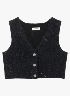 Sandro MICHOU – Top Van Katoenmix Met V-hals Met Tweedeffect | Zwart