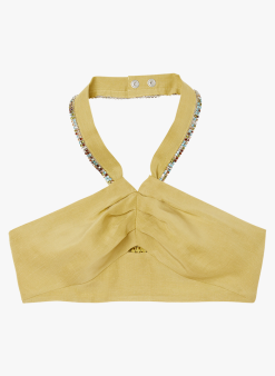 Sandro BLONVILLA – Korte Top Van Linnenmix Met Vierkante Kraag En Strepen | Violet