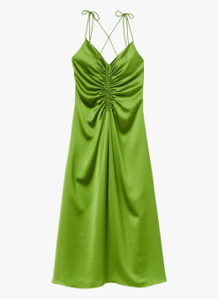 Sandro ZOLA – Lange, Soepelvallende, Satijnachtige Jurk | Groen