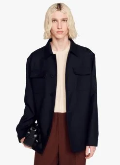 Sandro REQUIN – Soepelvallende Blouse Met Spread Collar | Blauw
