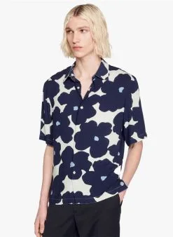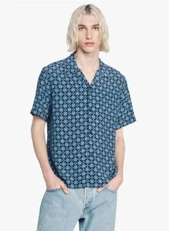 Sandro CROSS MC – Regular-fit Overhemd Met Cubaanse Kraag En Geometrische Print | Blauw