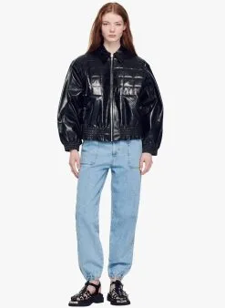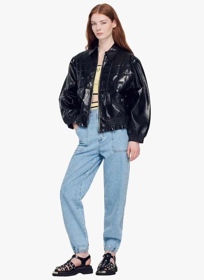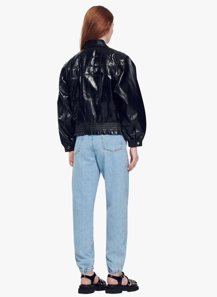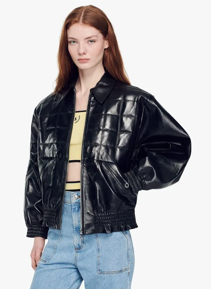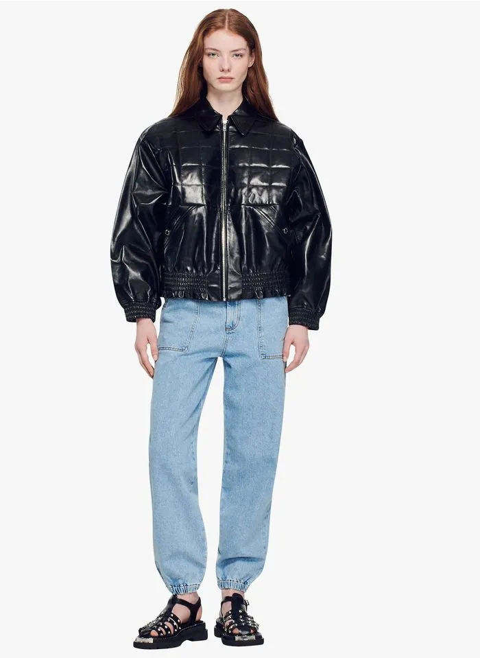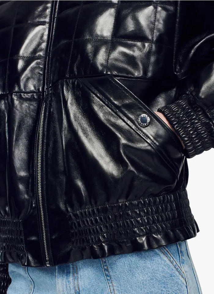 Gewatteerd, lamsleren jasje by Sandro voor Dames.