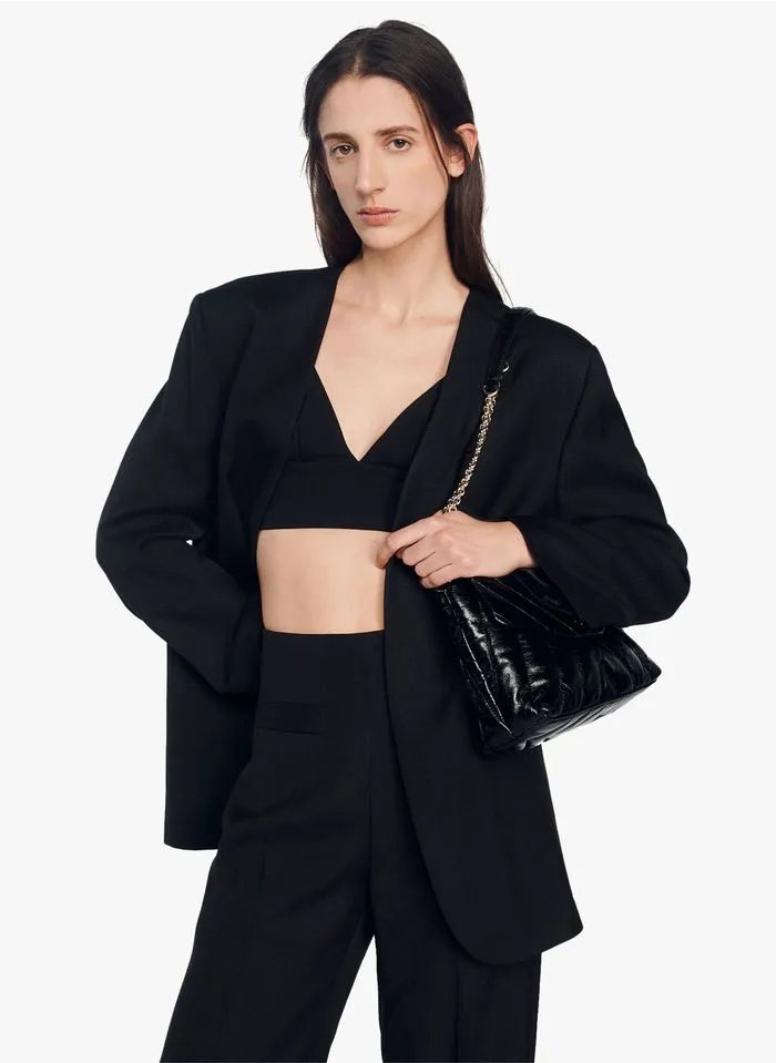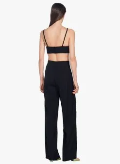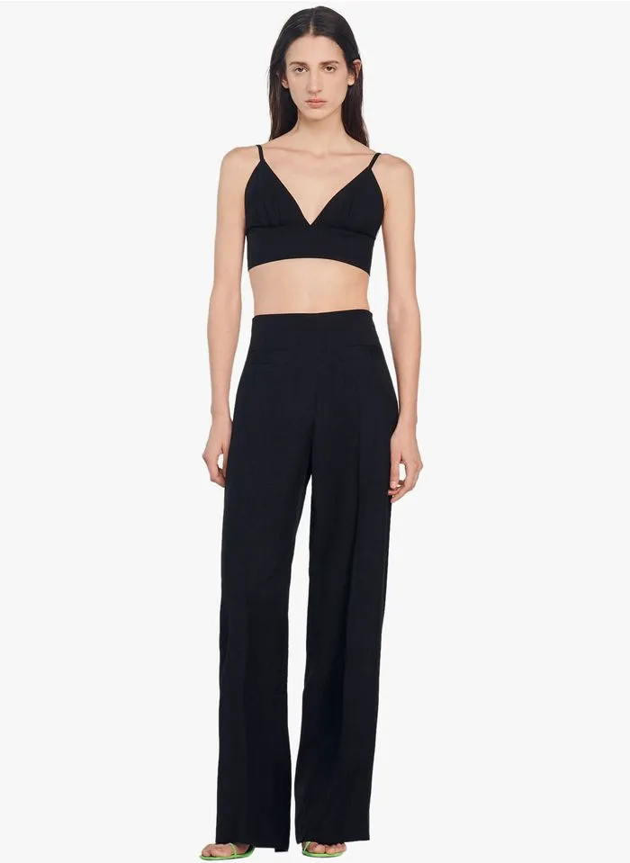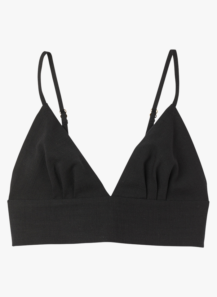 - Top court muni d’une encolure en V, de fines bretelles ajustable et d’une bande sous poitrine.