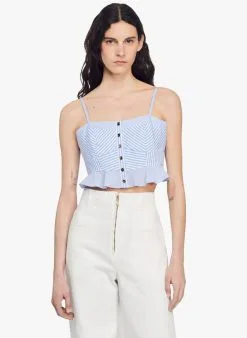 Korte, strapless top met strepenmotief katoenblend by Sandro voor Dames.
