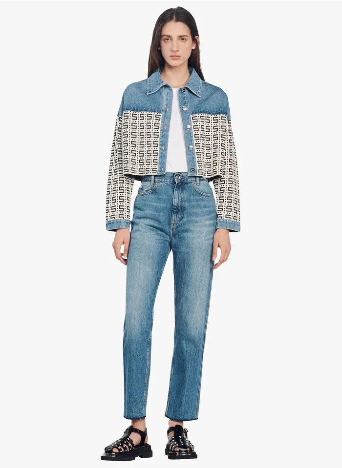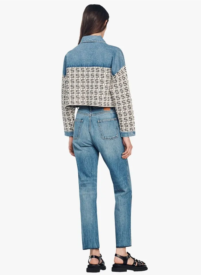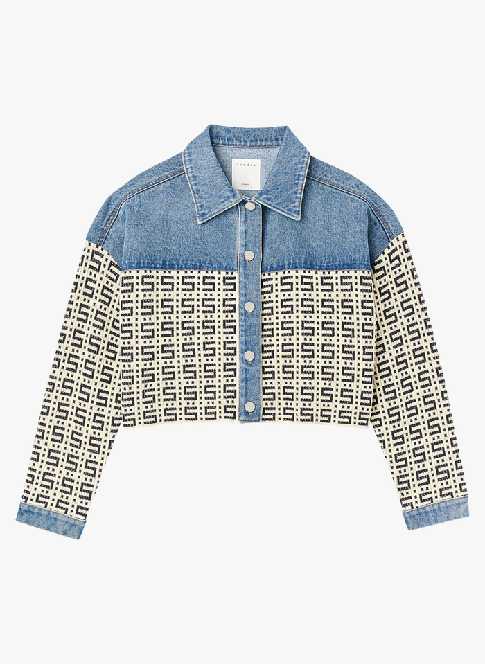 Kort jasje van denim en jacquard by Sandro voor Dames.