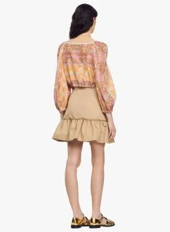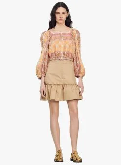 Korte top van linnenmix met vierkante hals en print by Sandro voor Dames.