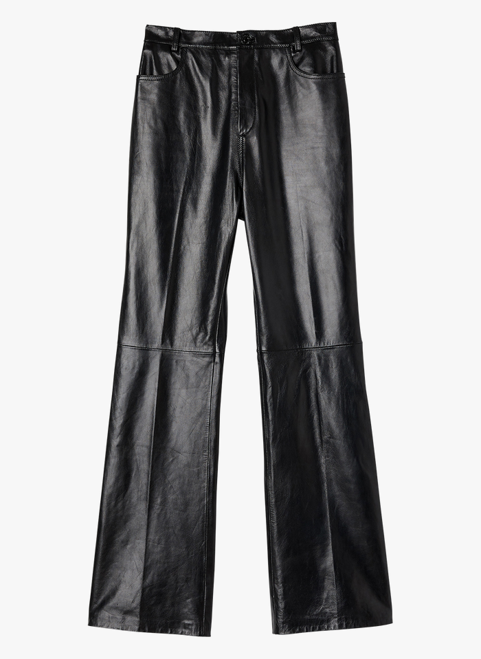 - Pantalon en cuir droit légèrement évasé en bas de jambe muni de poches avant et au dos.