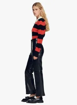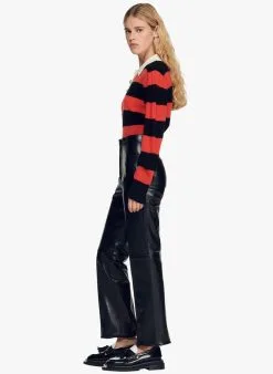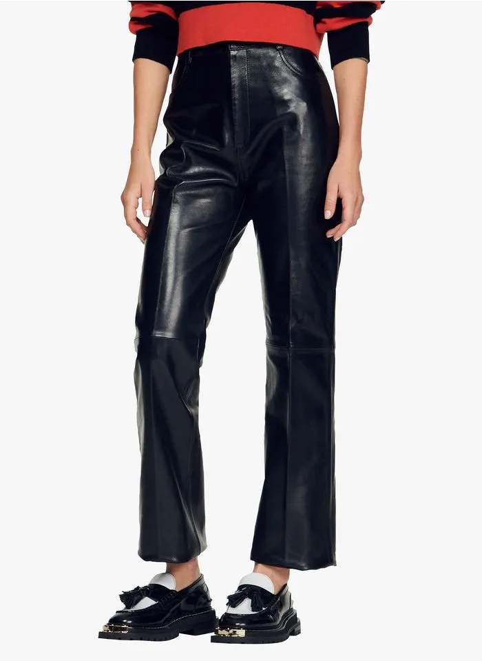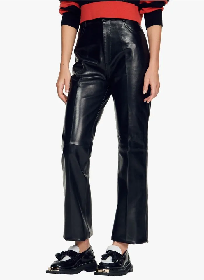 Leren broek met uitlopende pijpen by Sandro voor Dames.