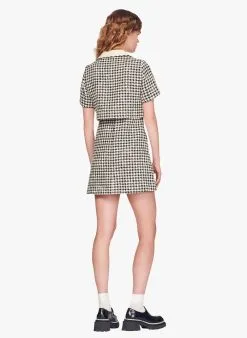 Korte jurk van katoenmix met klassieke kraag en pied-de-poulemotief by Sandro voor Dames.