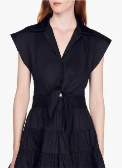 Korte jurk van biokatoen met V-hals by Sandro voor Dames.