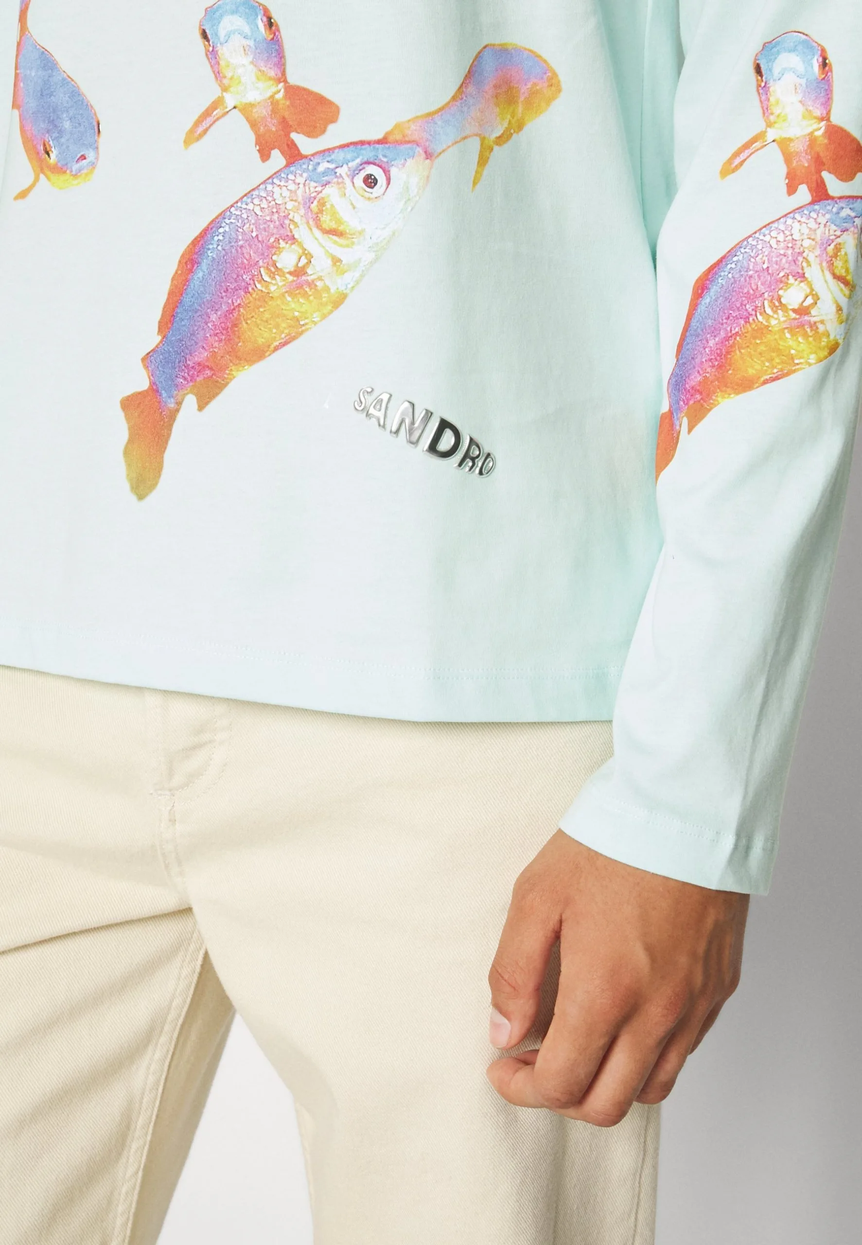 Sandro Goldfish Tee – Longsleeve – Bleu Menthe