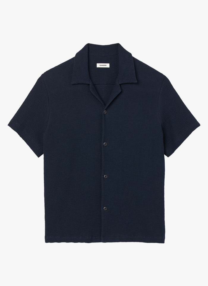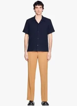 Sandro CROSS MC – Regular-fit Overhemd Met Cubaanse Kraag En Geometrische Print | Blauw