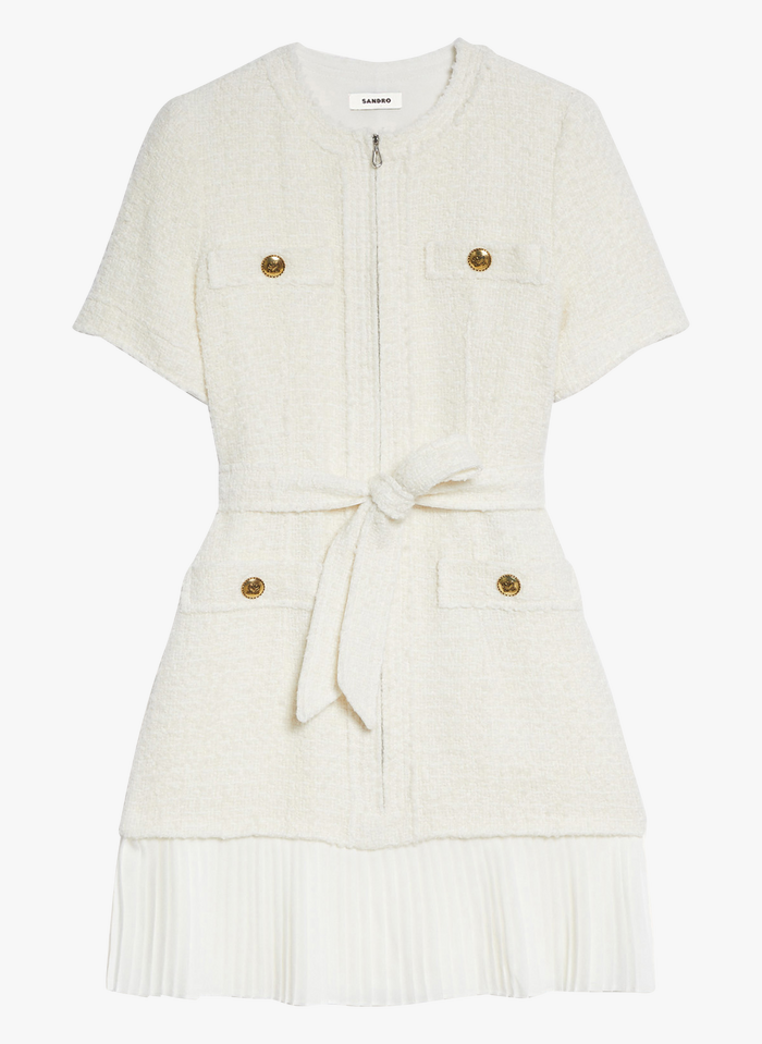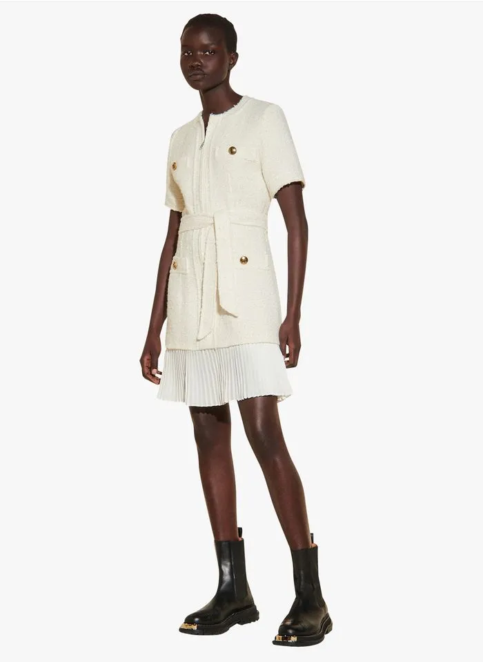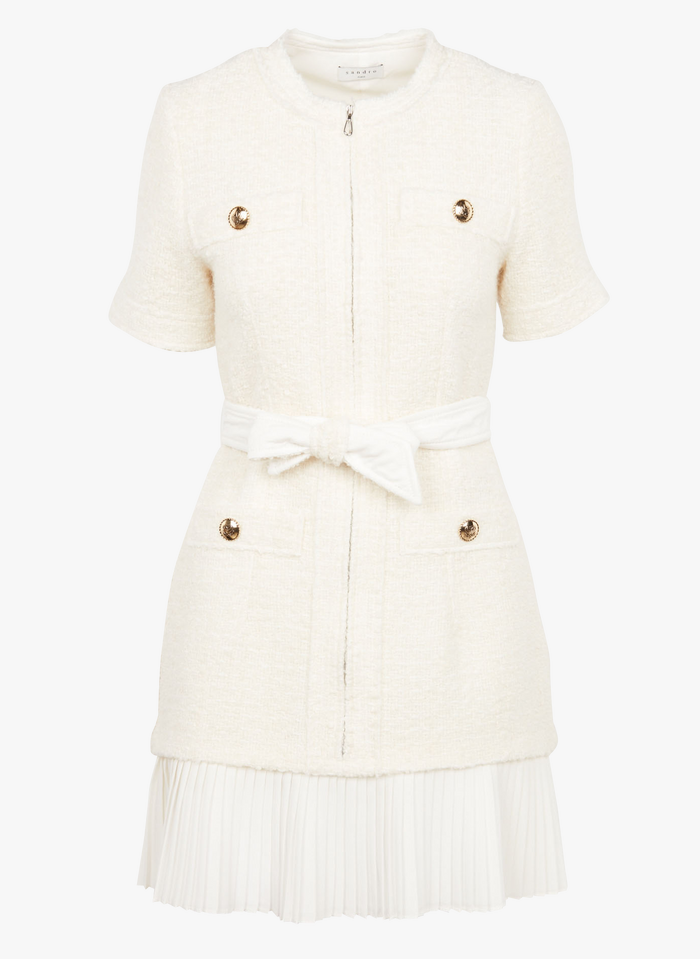 Korte jurk van tweed met volant en plooien by Sandro voor Dames.