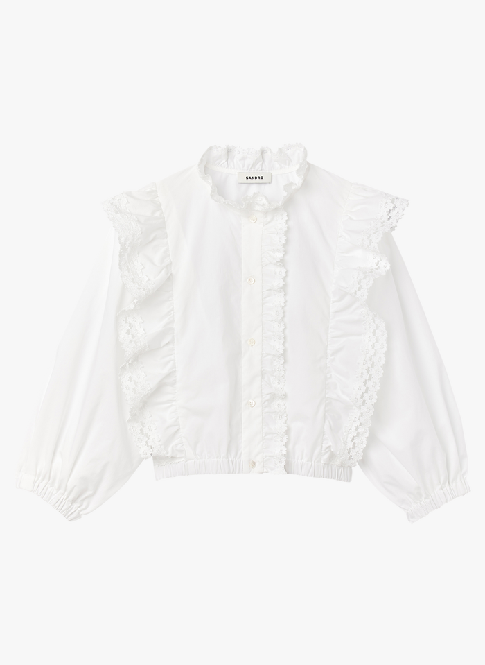 - Chemise courte esprit blouse, à volants et galons de dentelle.