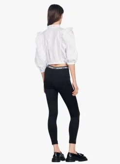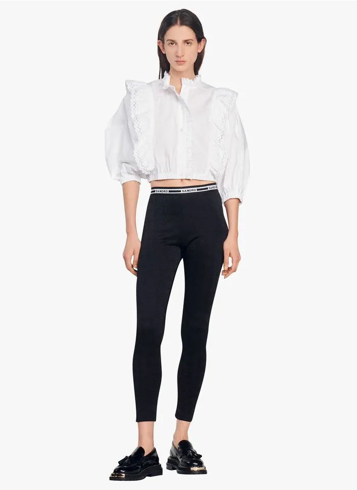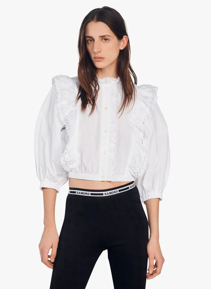 Blouse van kant en katoen met maokraag en volants by Sandro voor Dames.