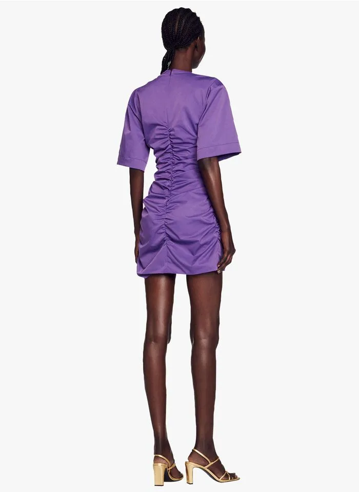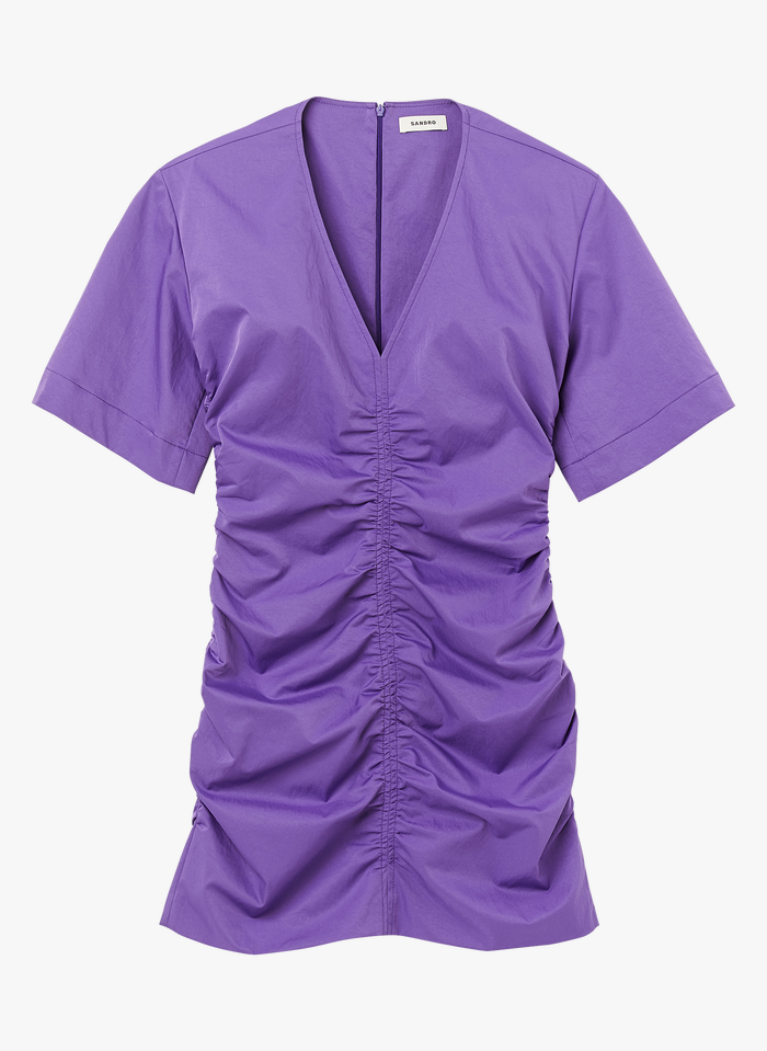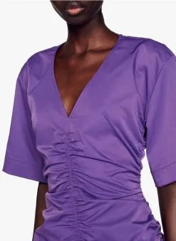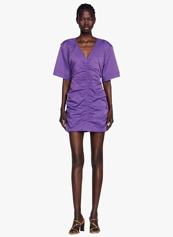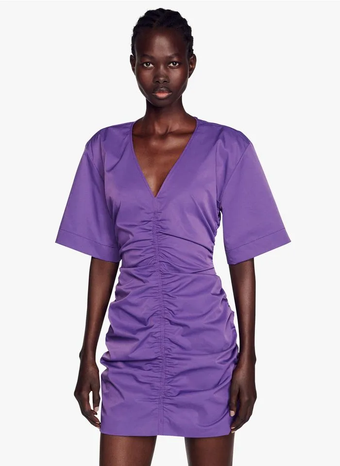 Korte jurk met fronsjes en V-hals by Sandro voor Dames.