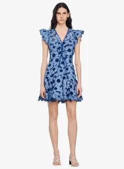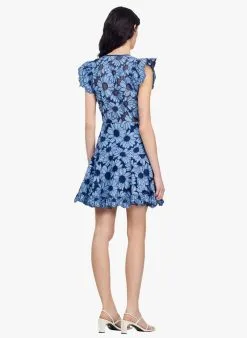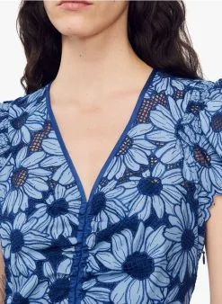 Korte, uitlopende jurk van guipurekant met margrietenmotief by Sandro voor Dames.