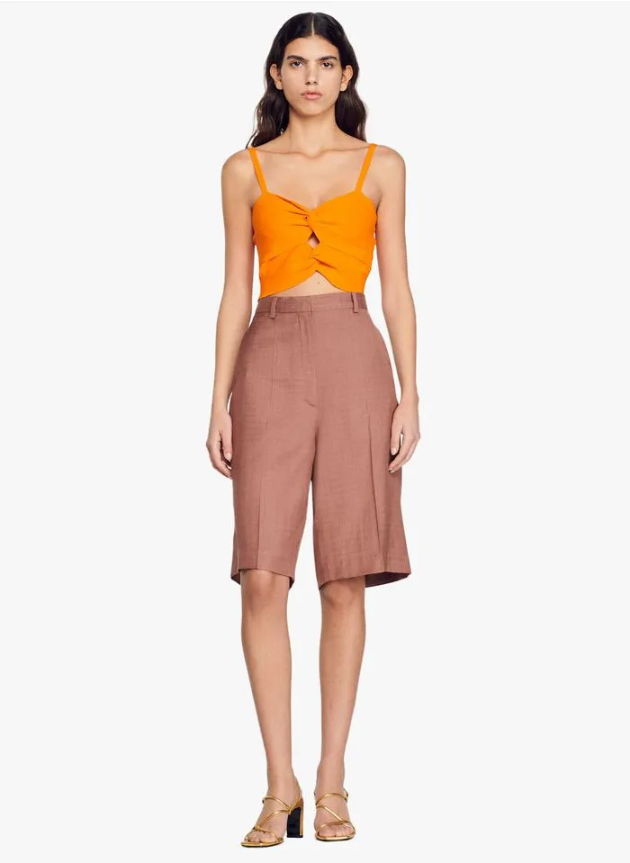 Sandro BLONVILLE – Croptop Met Gedrapeerd Effect Linnenblend | Groen