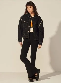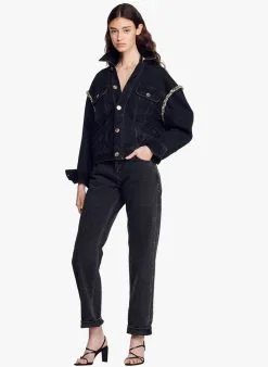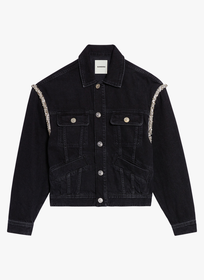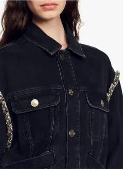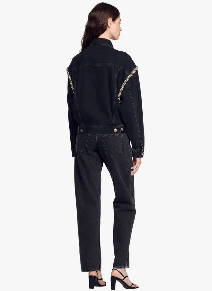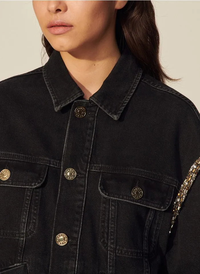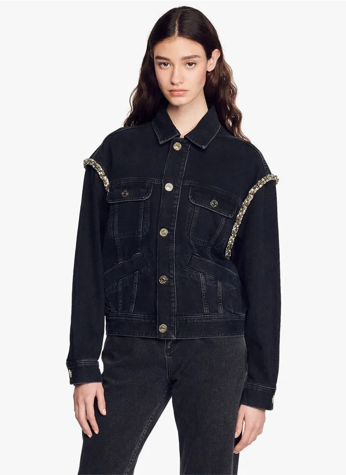 Spijkerjasje met klassieke kraag en stras by Sandro voor Dames.