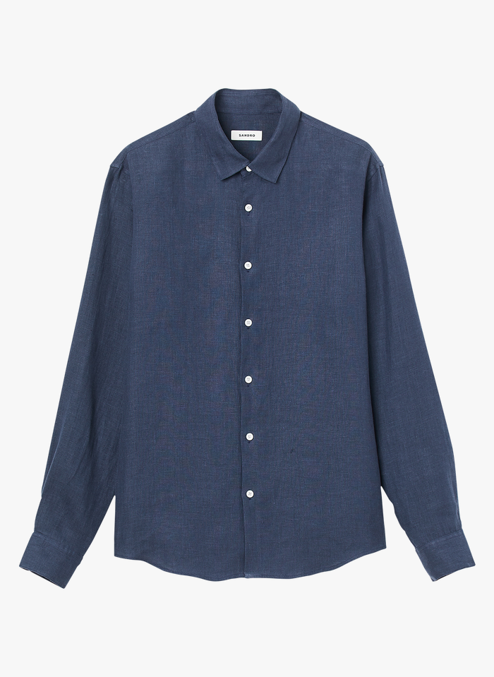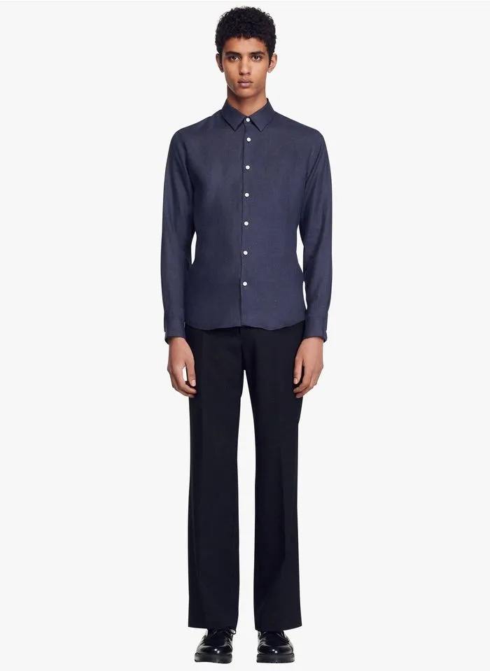 Sandro SEAMLESS HEMP – Regular-fit Overhemd Katoenblend | Blauw