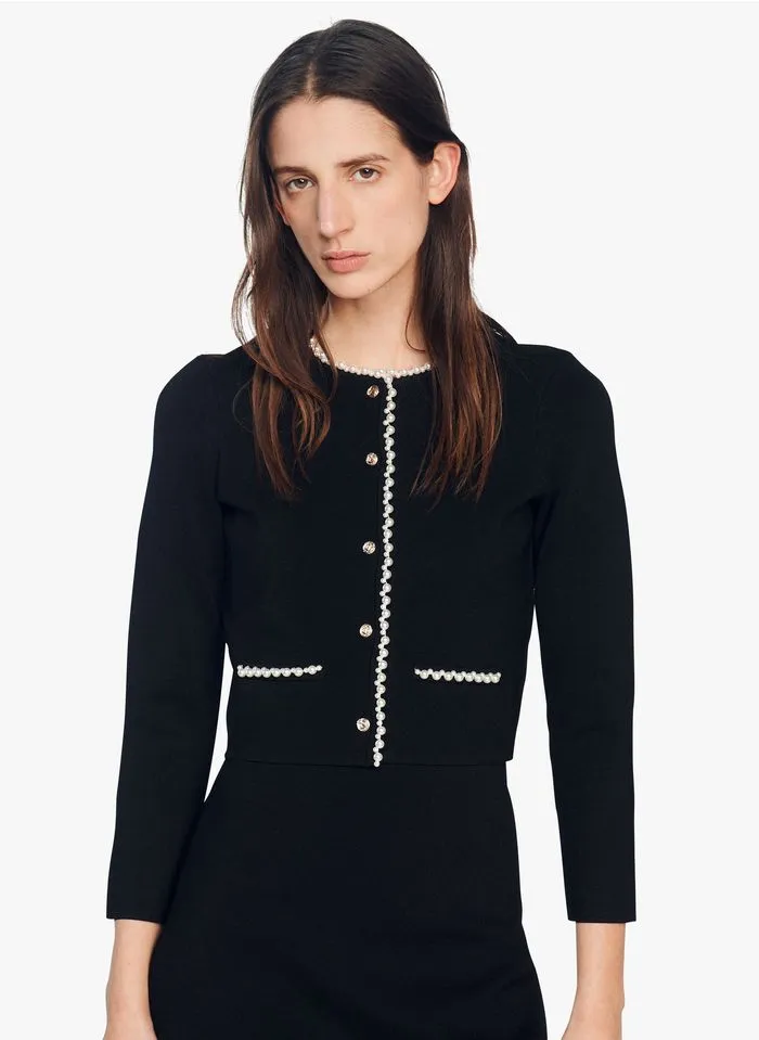 Kort jasje van gemengde viscose met kraaltjes by Sandro voor Dames.
