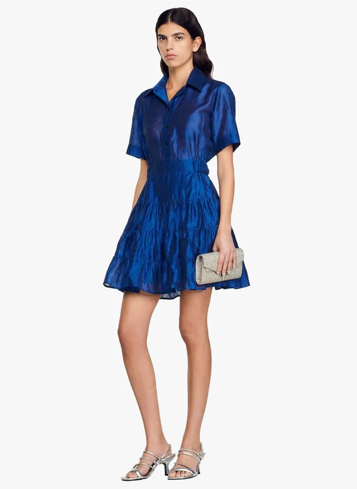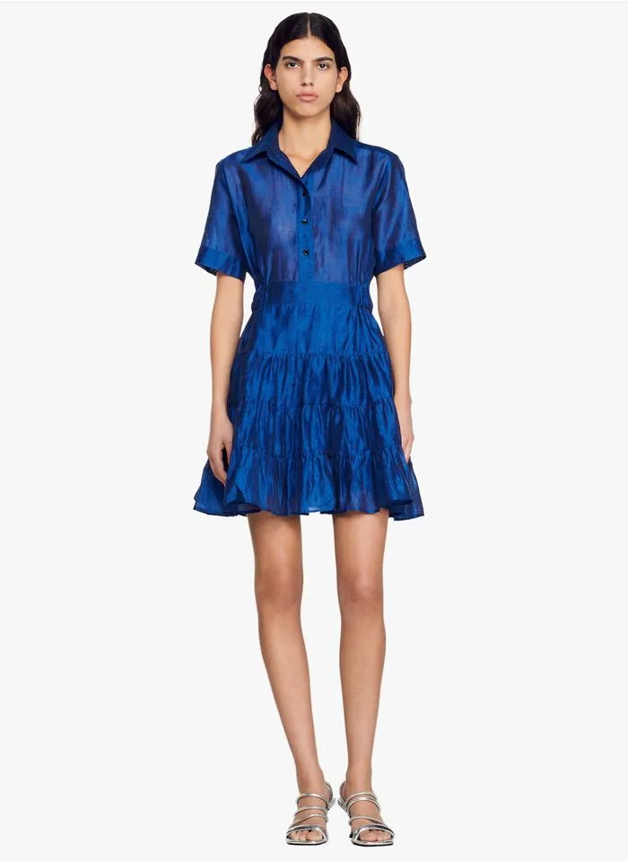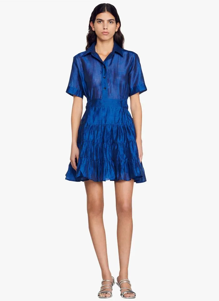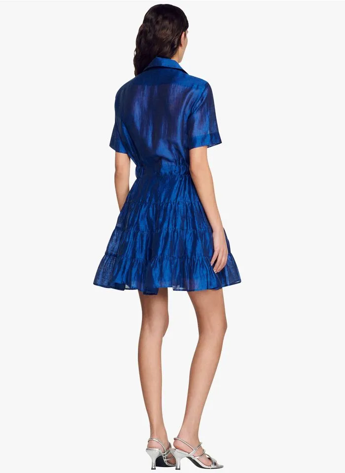 Korte jurk met volants linnenblend by Sandro voor Dames.